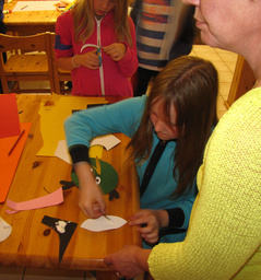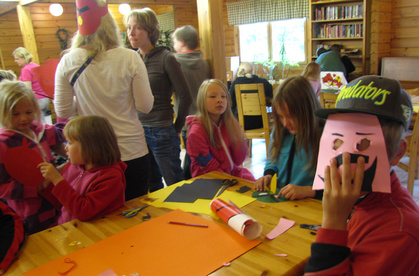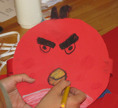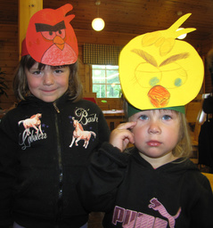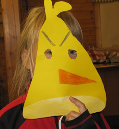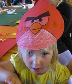 Sadepäivä. Askarreltiin Angry Birds päähineitä