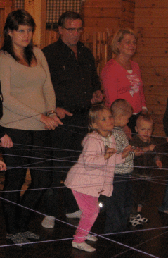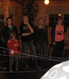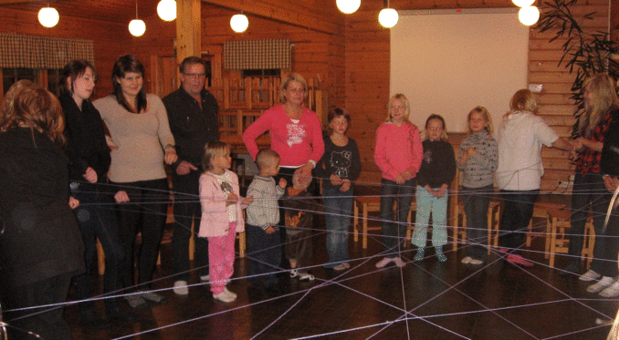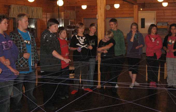 Tutustuimme toisimme hämähäkinseittileikin avulla. Nyt tiedämme toistemme nimet, eikä kenenkään tarvitse huutaa "hei sinä siellä".