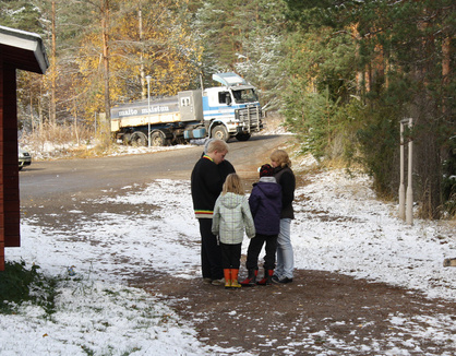 Vartio valmistautuu huutojuoksuun samalla kun "maitoauto" tankka kukkikseen vettä. Nyt saa taas hetken pestä käsiä ja käydä sisävessassa.